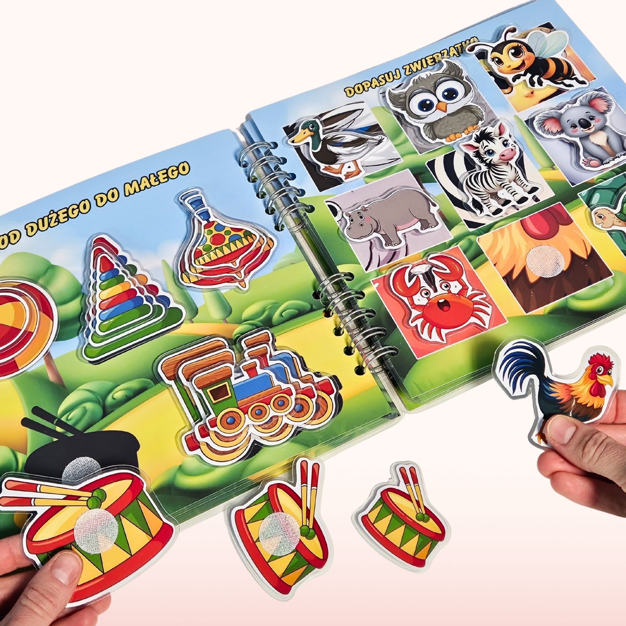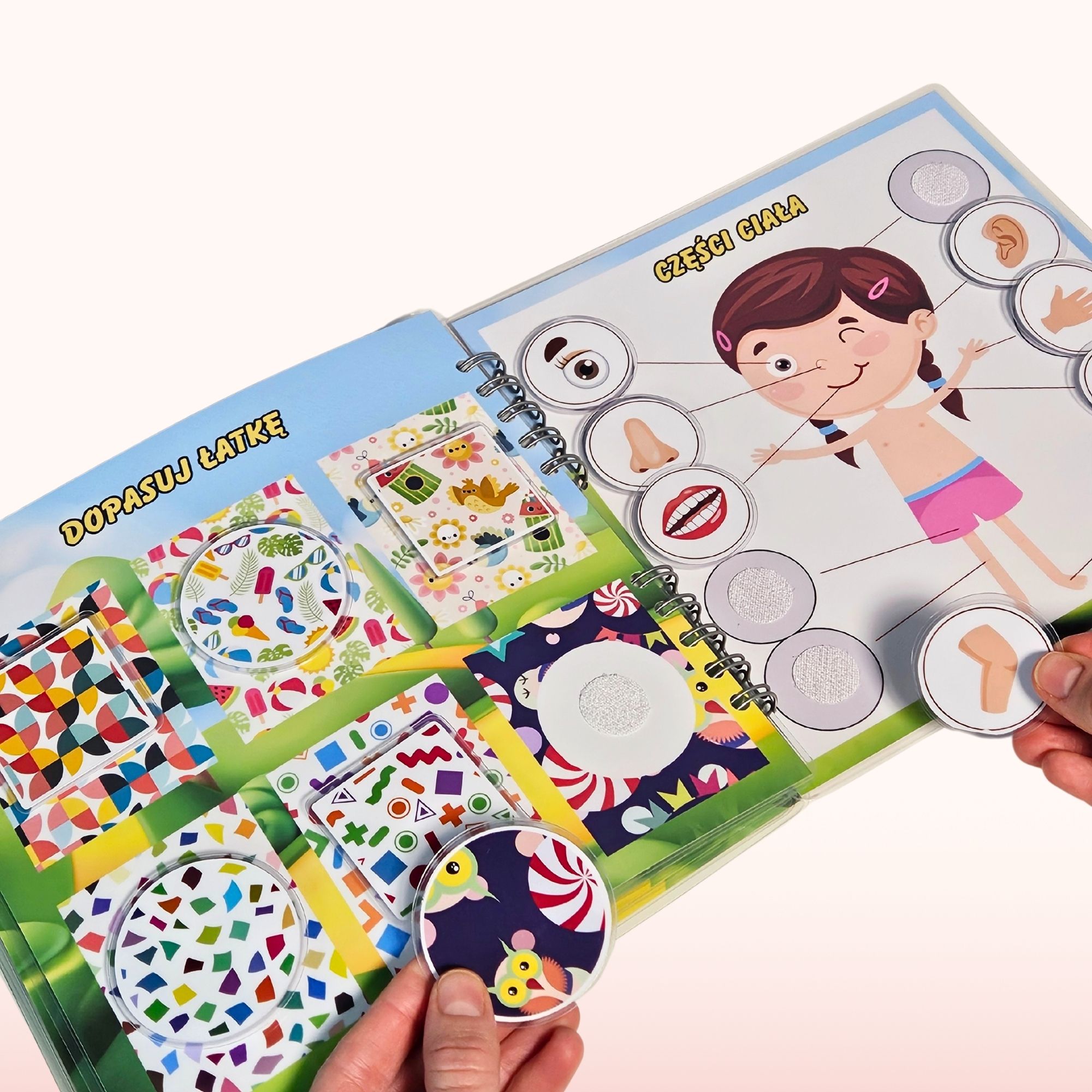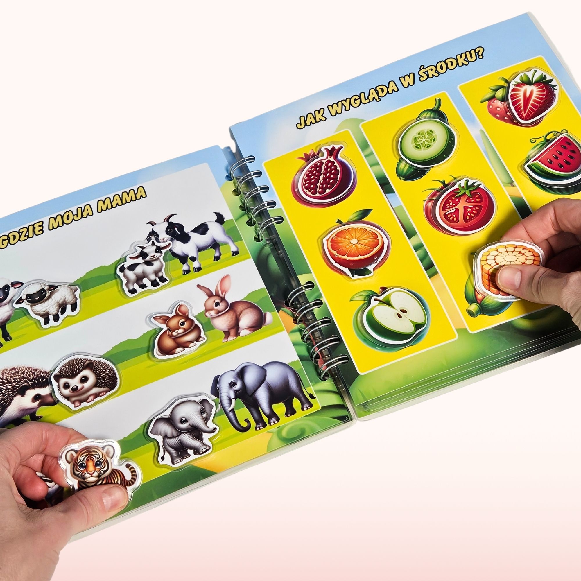 Lamibook „Moje małe przygody” to laminowana książeczka edukacyjna z rzepami, stworzona dla dzieci od 2. roku życia oraz rodziców, którzy chcą aktywnie towarzyszyć dziecku w poznawaniu świata.